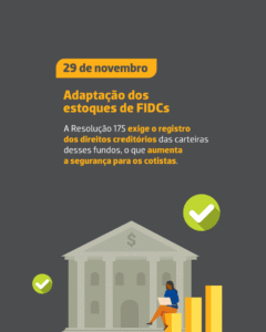 É quando entram em vigor dois marcos da Resolução CVM 175: as regras de transparência na remuneração dos prestadores de serviços de fundos e o fim do prazo de adaptação do estoque de FIDCs (Fundo de Investimento em Direitos Creditórios) à norma.